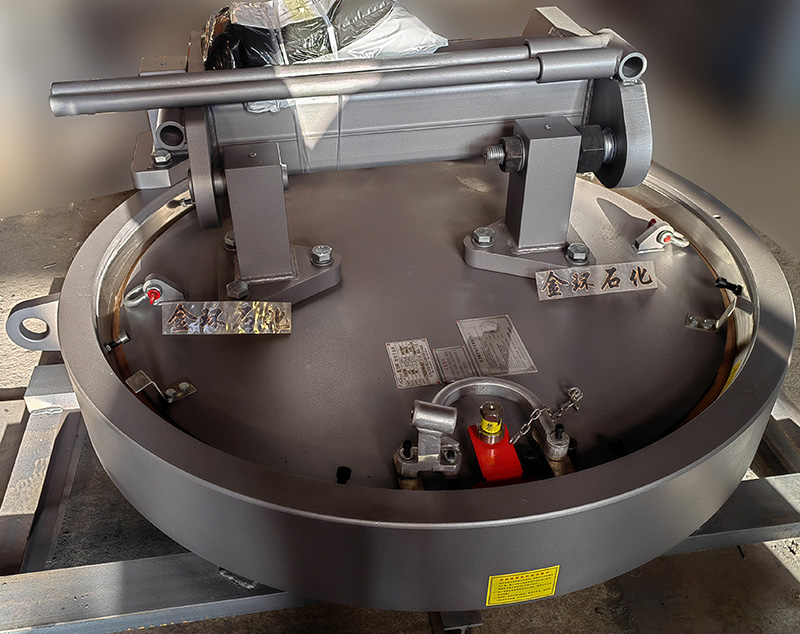 快開盲板是用于壓力管道或壓力容器的圓形開口上的一種機械裝置。一般由筒體法蘭、頭蓋、勾圈或卡箍、密封圈、安全聯(lián)鎖機構(gòu)、開閉機構(gòu)、轉(zhuǎn)臂及短節(jié)(需要時)等部件構(gòu)成。
