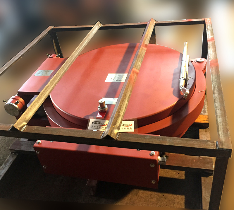 快開(kāi)盲板是用于壓力管道或壓力容器的圓形開(kāi)口上的一種機(jī)械裝置。一般由筒體法蘭、頭蓋、勾圈或卡箍、密封圈、安全聯(lián)鎖機(jī)構(gòu)、開(kāi)閉機(jī)構(gòu)、轉(zhuǎn)臂及短節(jié)(需要時(shí))等部件構(gòu)成。