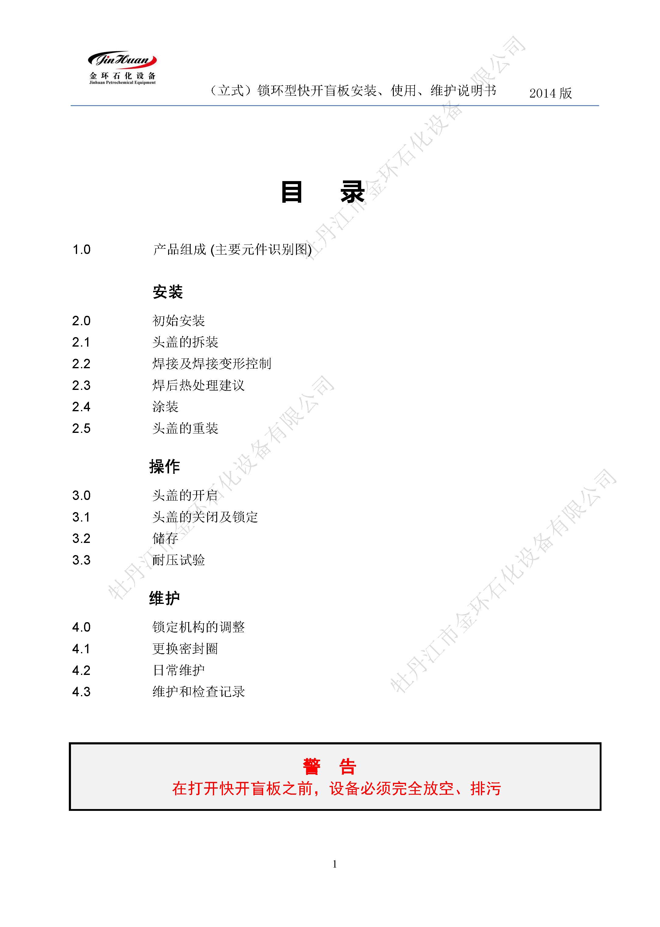 鎖環(huán)立式快開盲板說明書