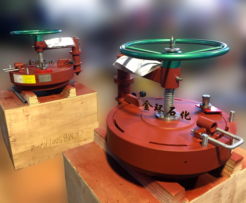 快開(kāi)盲板是用于壓力管道或壓力容器的圓形開(kāi)口上的一種機(jī)械裝置。一般由筒體法蘭、頭蓋、勾圈或卡箍、密封圈、安全聯(lián)鎖機(jī)構(gòu)、開(kāi)閉機(jī)構(gòu)、轉(zhuǎn)臂及短節(jié)(需要時(shí))等部件構(gòu)成。