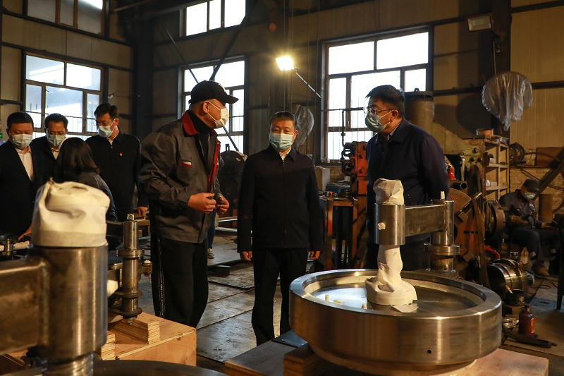 在牡丹江市金環(huán)石化設(shè)備有限公司,高忠遠(yuǎn)同志深入生產(chǎn)車間檢查安全生產(chǎn)、隱患排查、疫情防控等措施落實(shí)情況,向企業(yè)員工宣講省十三次黨代會(huì)精神,并認(rèn)真聽(tīng)取企業(yè)歷史沿革、生產(chǎn)經(jīng)營(yíng)、經(jīng)濟(jì)效益等情況介紹,了解企業(yè)發(fā)展面臨的問(wèn)題和困難,對(duì)企業(yè)安置殘疾人就業(yè)給予充分肯定和高度贊譽(yù)。他指出,金環(huán)石化是由國(guó)有企業(yè)轉(zhuǎn)制而來(lái)的股份制民營(yíng)企業(yè),是目前國(guó)內(nèi)唯一一家專門生產(chǎn)快開(kāi)盲板的廠家,產(chǎn)品銷售全國(guó)各省、市、自治區(qū)以及各大油田,并遠(yuǎn)銷東南亞、中東地區(qū),是我市優(yōu)秀民營(yíng)企業(yè)的代表和典范。他強(qiáng)調(diào),推動(dòng)牡丹江全面振興全方位振興,工業(yè)要率先振興。企業(yè)要在學(xué)習(xí)貫徹省十三次黨代會(huì)精神上下真功夫、實(shí)功夫,按照省黨代會(huì)關(guān)于“八個(gè)振興”,特別是產(chǎn)業(yè)振興和 “換道超車”部署要求,搶抓新一輪科技革命和產(chǎn)業(yè)變革機(jī)遇,勇于創(chuàng)新、敢于突破,切實(shí)把省黨代會(huì)精神轉(zhuǎn)化為指導(dǎo)生產(chǎn)、推動(dòng)企業(yè)發(fā)展的強(qiáng)大動(dòng)力。要全面落實(shí)安全生產(chǎn)主體責(zé)任,牢固樹(shù)立紅線意識(shí)、底線思維,建立健全全員安全生產(chǎn)責(zé)任制,進(jìn)一步筑牢安全防線。他要求,轄區(qū)黨委政府特別是相關(guān)部門要以“能力作風(fēng)建設(shè)年”活動(dòng)為契機(jī),針對(duì)企業(yè)發(fā)展痛點(diǎn)難點(diǎn),不斷深化紓困解難措施,用心用情用力當(dāng)好企業(yè)發(fā)展服務(wù)員。屬地公安機(jī)關(guān)要充分發(fā)揮職能作用,依法嚴(yán)厲打擊妨礙企業(yè)生產(chǎn)經(jīng)營(yíng)違法犯罪活動(dòng),常態(tài)開(kāi)展安全生產(chǎn)、疫情防控工作督導(dǎo)指導(dǎo),全力保障企業(yè)合法權(quán)益和安全生產(chǎn)。